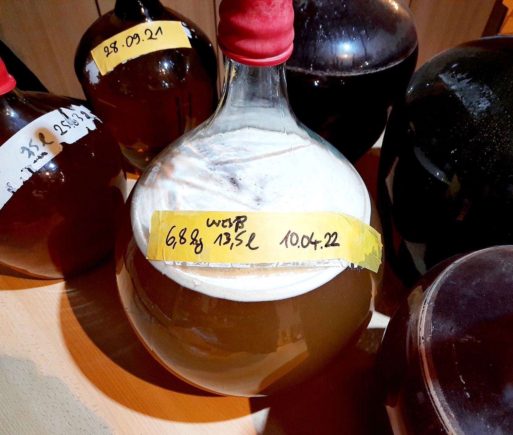 Der Met ist aus Honig aus unserer Imkerei und reift in Gärballons.